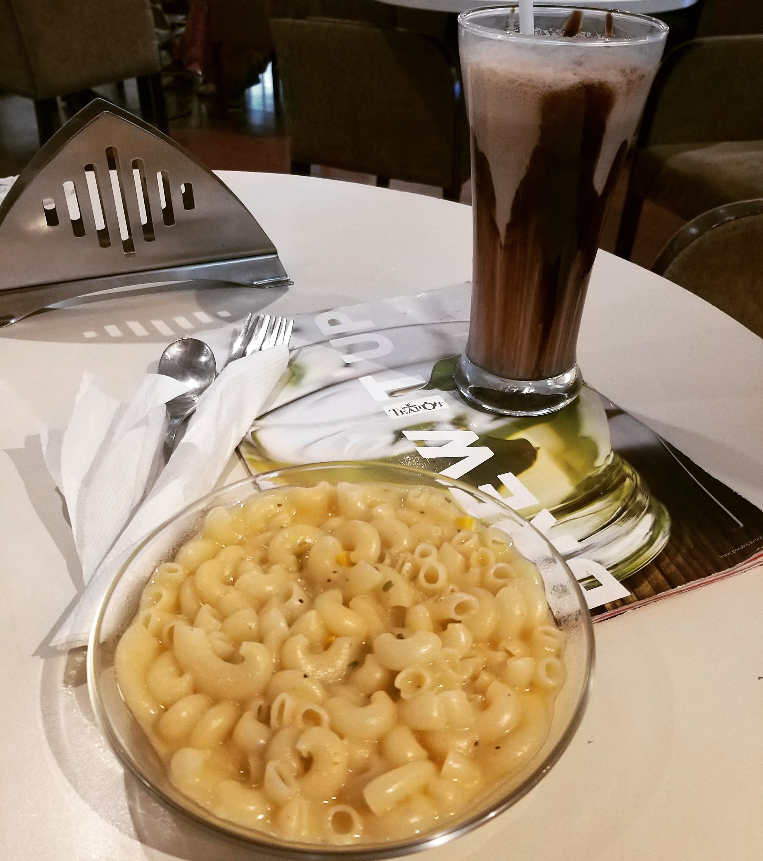 The Tandoori Pasta and Chocolate Shake at Goodricke Tea Pot is delicious and awesome.