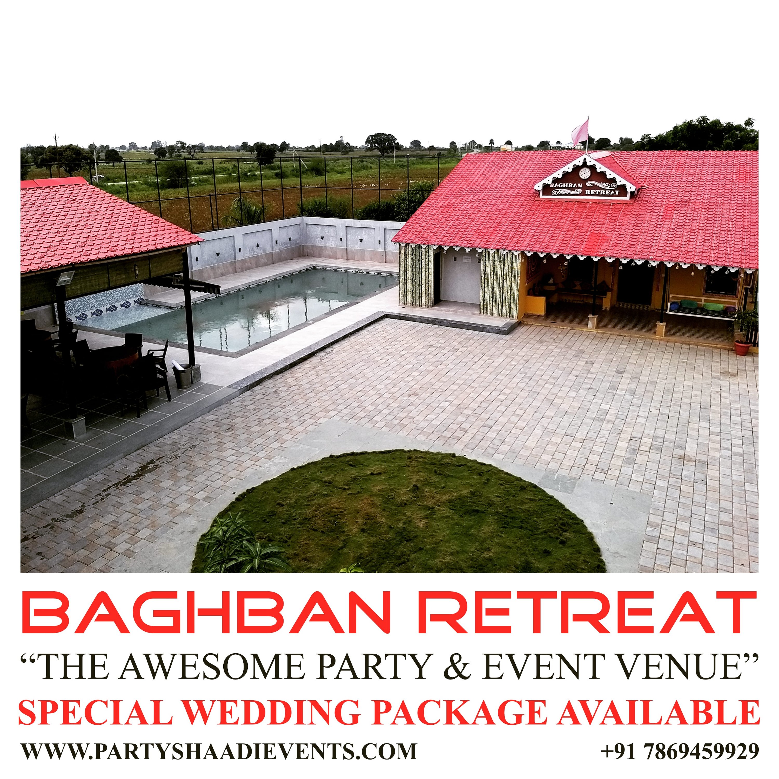 Baghban Retreat “The Awesome Party & Event Venue” Banquet Hall and Resort Gram Khajuri Sadak Bhopal Indore Highway Bhopal Call 7869459929