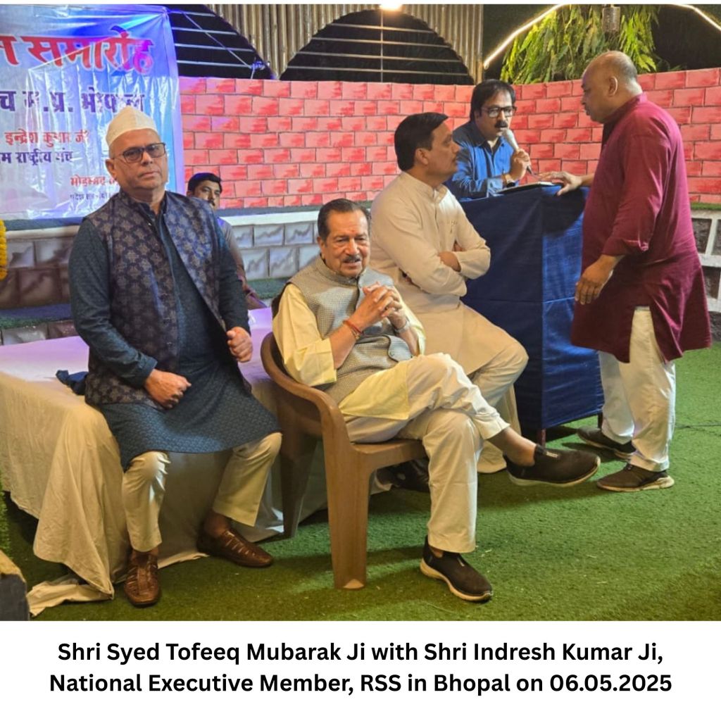 Shri Syed Tofeeq Mubarak Ji with Shri Indresh Kumar Ji, National Executive Member, RSS in Bhopal on 06.05.2025
